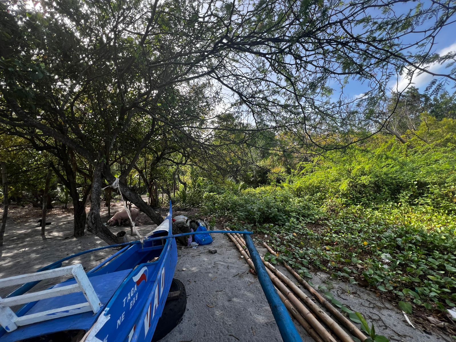 This beachfront property is located around 1 kilometer from the national highway, accessible via a 4-meter-wide unpaved road. The area is peaceful and features a sandy shoreline, making it ideal for those seeking a quiet coastal setting. The lot has a few nipa palms and mangroves, adding to its natural charm.