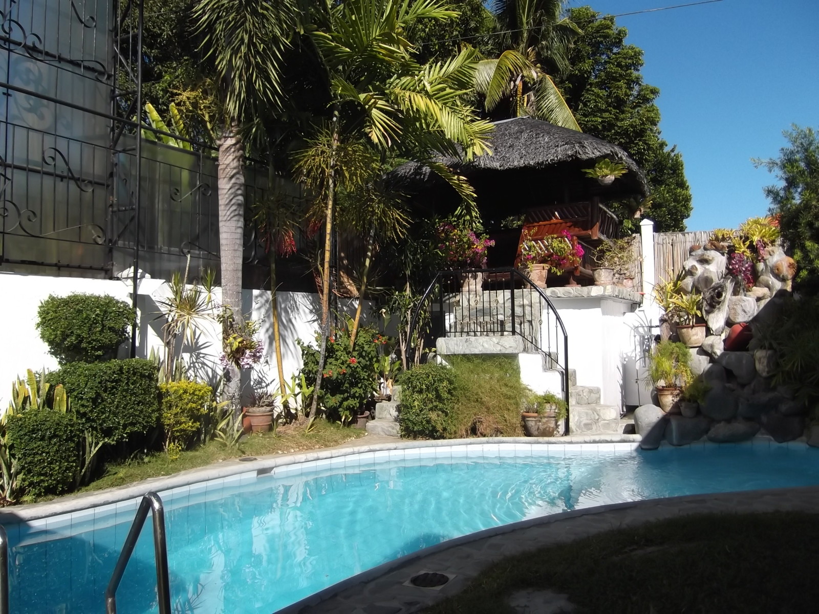 One of the highlights of the property is the private swimming pool, designed for introductory diving, with one section reaching approximately 10 feet deep. The pool features a sloping design, waterfalls, and massage jets, creating a relaxing resort-style environment at home.